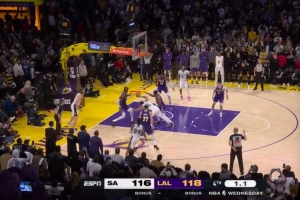 体育资讯11月7日讯 昨天一场NBA常规赛,湖人在主场以118-116击败马刺。今天,NBA官方公布了最后两分钟裁判报告。有一次误判。